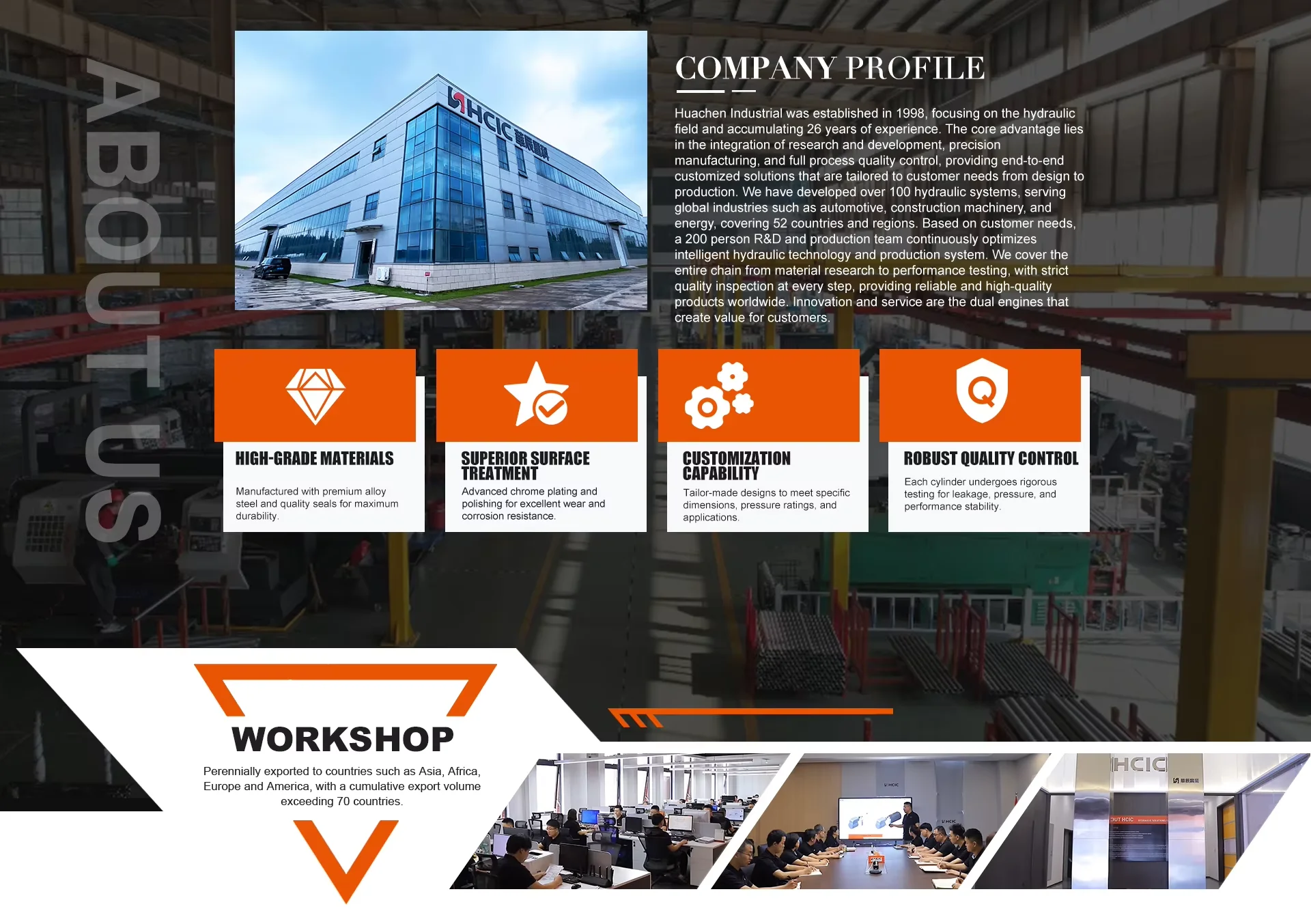 HCIC Hydraulic to profesjonalny producent hydrauliki, specjalizujący się w projektowaniu, produkcji, montażu, transformacji, uruchomieniu i sprzedaży markowych komponentów hydraulicznych układów hydraulicznych. Oferujemy usługi techniczne i zależy nam na dostarczaniu naszym klientom bezpiecznych i niezawodnych produktów, spełniających najbardziej rygorystyczne wymagania. Zespół inżynierów HCIC ściśle współpracuje z klientami, aby zrozumieć ich zastosowania. Korzystając z szeregu sprawdzonych metod projektowania i zaawansowanego sprzętu produkcyjnego, w połączeniu z niezrównanym doświadczeniem inżynieryjnym i produkcyjnym, HCIC Hydraulics opracowuje bezpieczne i niezawodne cylindry hydrauliczne do zastosowań krytycznych, wspierane przez niezrównaną obsługę klienta. Projektujemy, konstruujemy i produkujemy cylindry hydrauliczne w najnowocześniejszym zakładzie produkcyjnym i przestrzegamy naszego systemu zarządzania jakością posiadającego certyfikat ISO 9001-2015, aby zapewnić naszym klientom produkty najwyższej jakości.