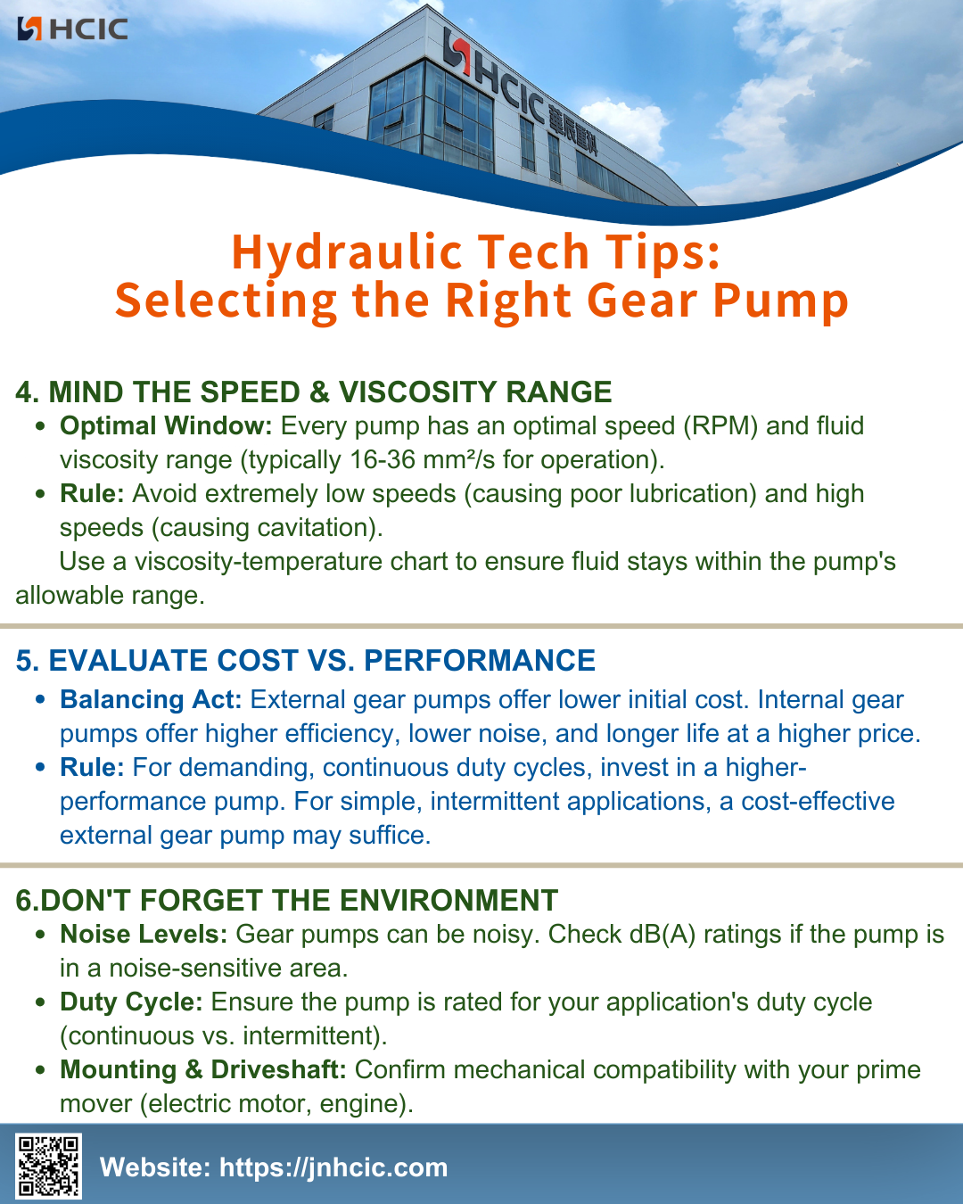 Optymalne okno: każda pompa ma optymalną prędkość (obr./min) i zakres lepkości płynu (zwykle 16–36 mm²/s podczas pracy).